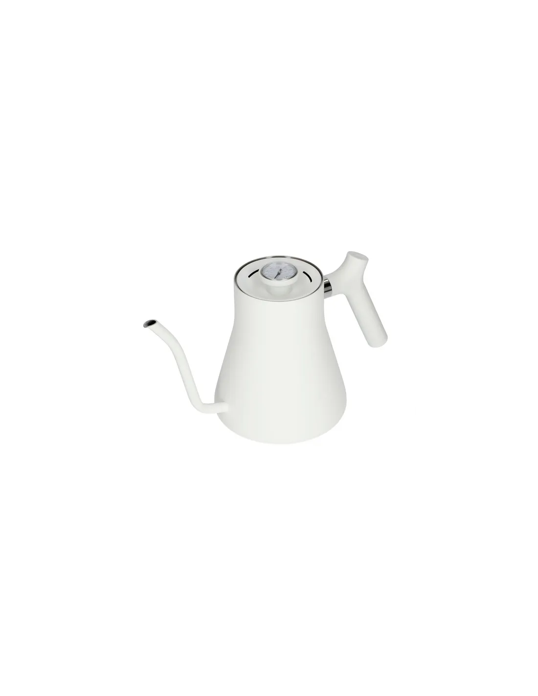 AFeloow Stagg 1l-es vízkanna beépített hőmérővel és kiöntővel, amelyet kifejezetten az alternatív kávékészítmények pontos kiöntéséhez terveztek. Szín: fehér.