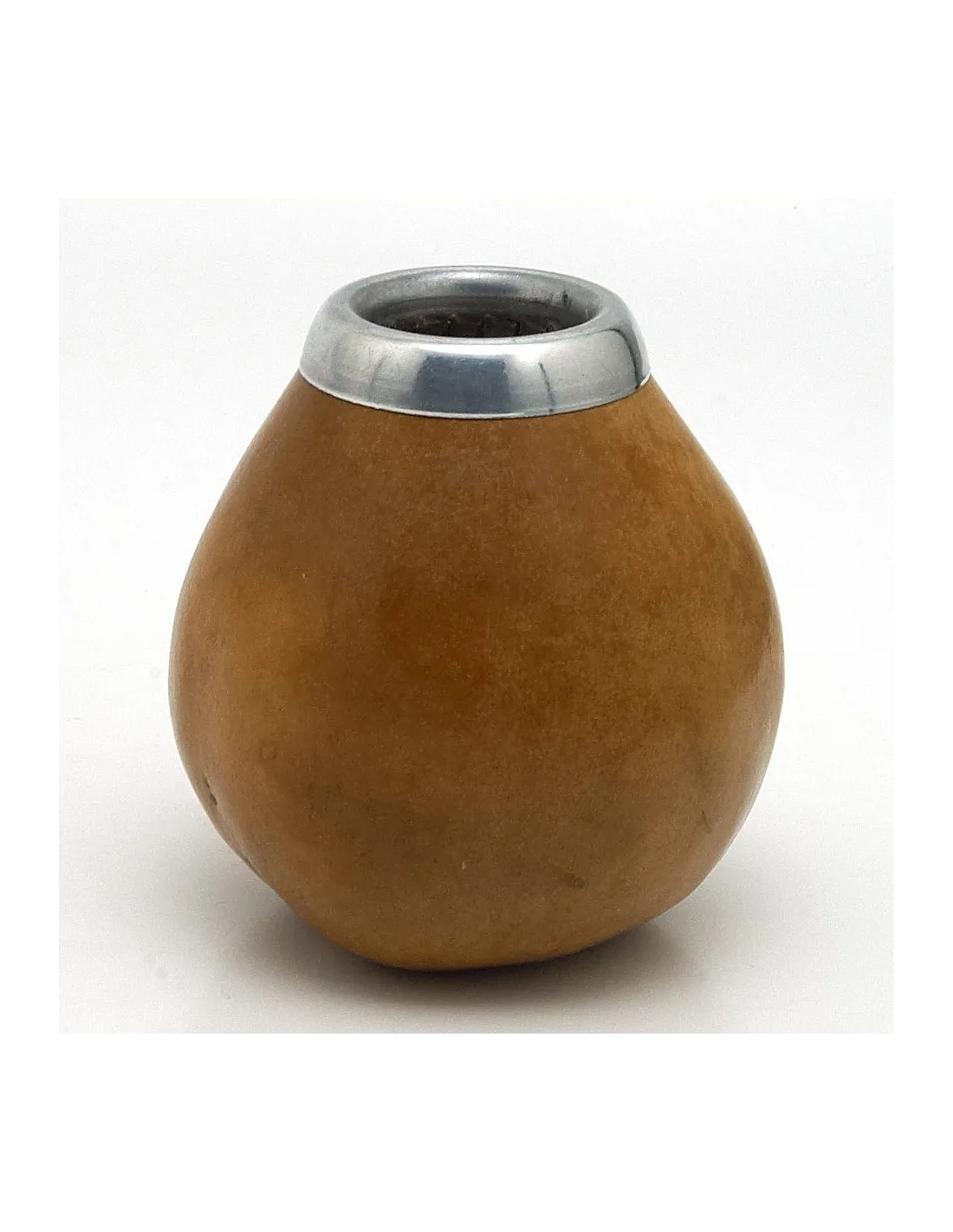 Aklasszikus forma és a fémes ezüstszínű perem a tök sokoldalú és szép edényt tesz a mate ivásához.