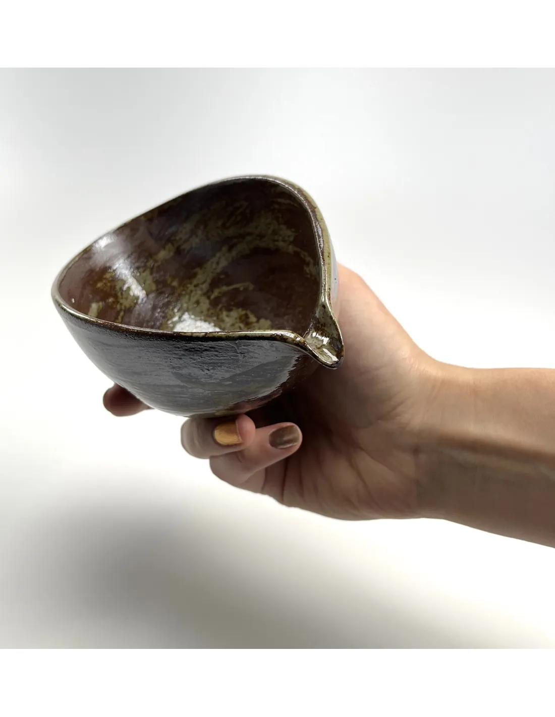 Kaffia Chawan to japońska ręcznie robiona ceramiczna miseczka retro wykonana z gruboziarnistej gliny, idealna do przygotowywania herbaty Matcha. Pozwala ona na idealne wymieszanie herbaty z wodą i zapewnia jej optymalny profil smakowy. Jej design i jakość wykonania sprawiają, że jest to idealny wybór dla miłośników herbaty poszukujących autentycznego i estetycznego naczynia do ceremonii parzenia herbaty.