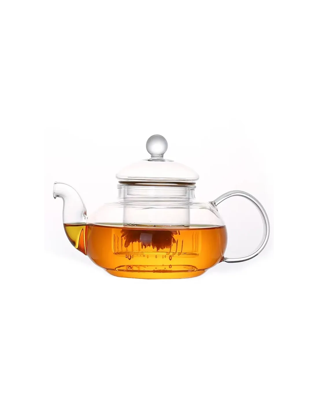 Szklany czajniczek o pojemności 240 ml jest idealny do przygotowywania i serwowania mniejszych ilości herbaty. Wyposażony jest w sitko, które zapewnia doskonałe zaparzanie liści herbaty i łatwe nalewanie bez pozostawiania resztek napoju. Dzięki przezroczystej konstrukcji można monitorować proces parzenia i cieszyć się kolorem herbaty. Czajniczek jest nie tylko praktycznym, ale także eleganckim dodatkiem, który uprzyjemni rytuał parzenia herbaty. Idealny wybór dla osób indywidualnych lub do stylowego serwowania herbaty w mniejszych grupach.