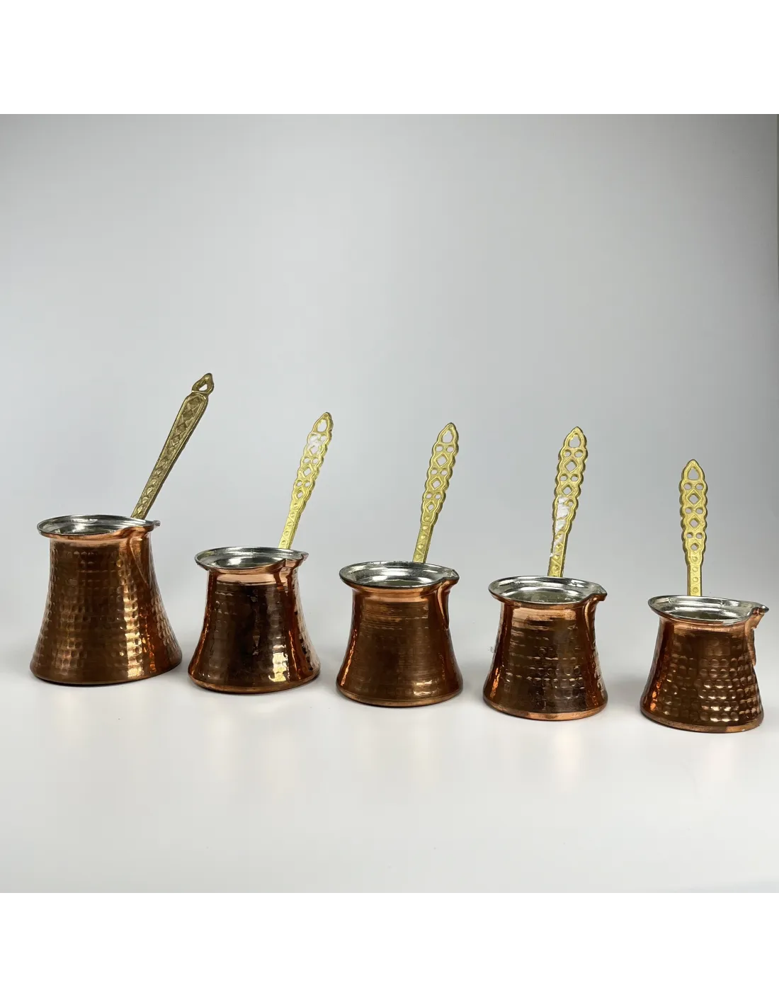Ręcznie wykonana miedziana jeezva prosto z tureckiej wsi. Dżezwa jest młotkowana tradycyjną metodą rzemieślniczą.