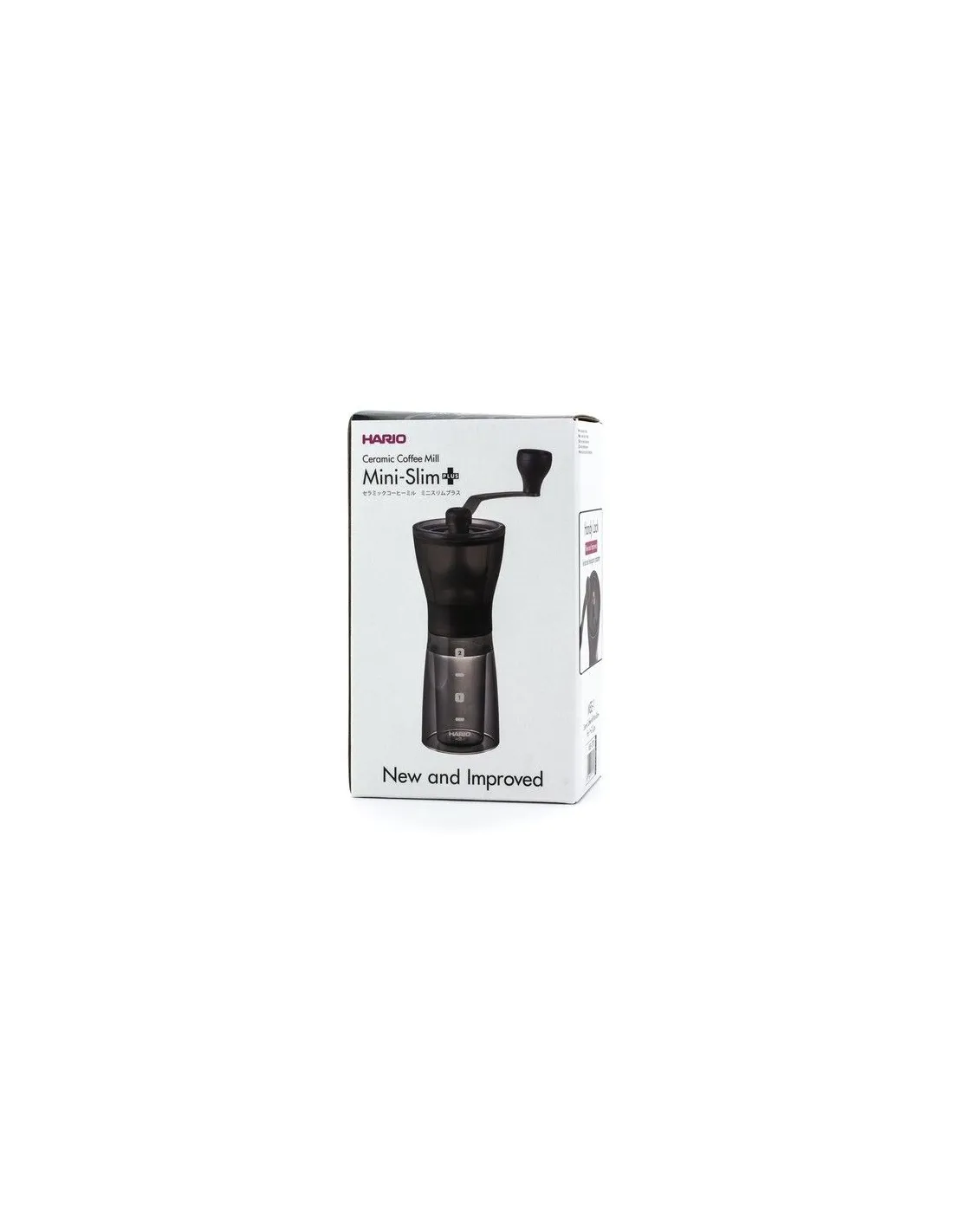 Hario Mini Mill Slim PLUS to nowa wersja popularnego młynka Mini Mill Slim z ulepszonym sześciokątnym uchwytem w eleganckim wykończeniu w kolorze ciemnego dymu.