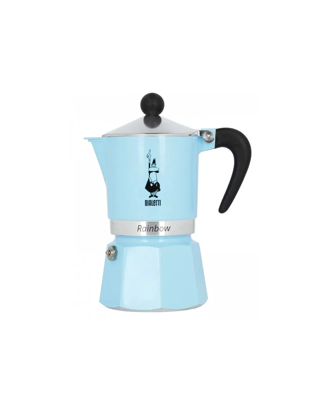 Stylowy aluminiowy dzbanek moka Rainbow włoskiej firmy Bialetti do tradycyjnego przygotowywania mocniejszej kawy. Nadaje się na 3 filiżanki. Pojemność: ok. 130 ml.